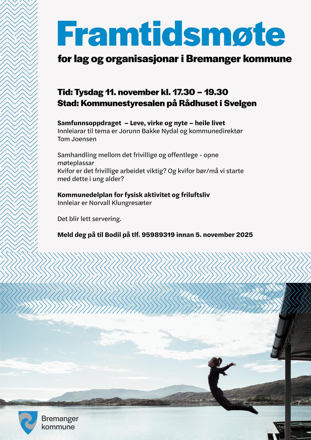Jorunn Bakke Nydal har fått kulturprisen av Kinn kommune. No kjem ho til Svelgen for å innleie på møte med dei frivillige organisasjonane i kommunen. Her kan du lese meir om det: https://godebremanger.no/inviterer-frivillige-til-mote-om-framtida/Agenda for møtet: